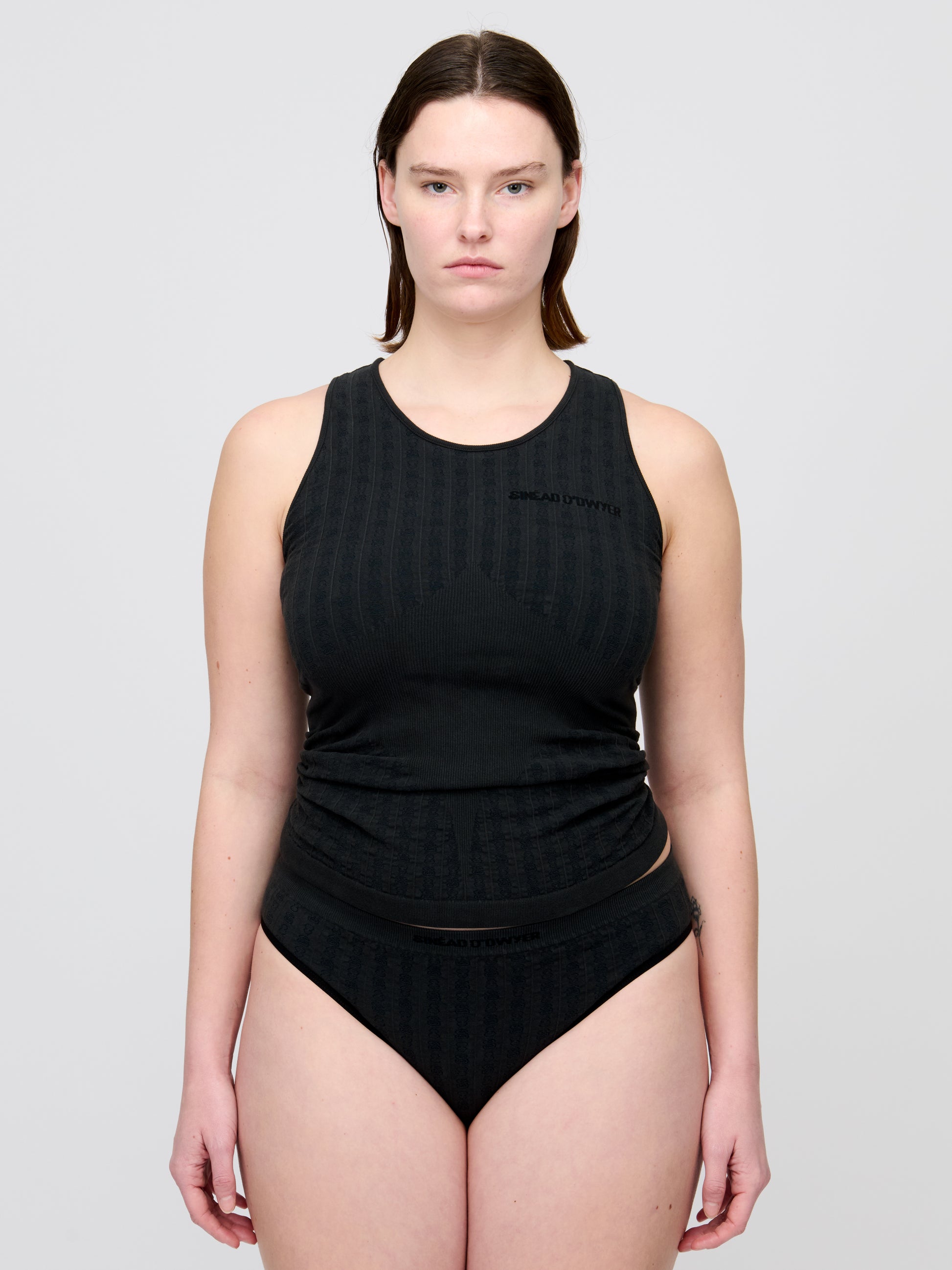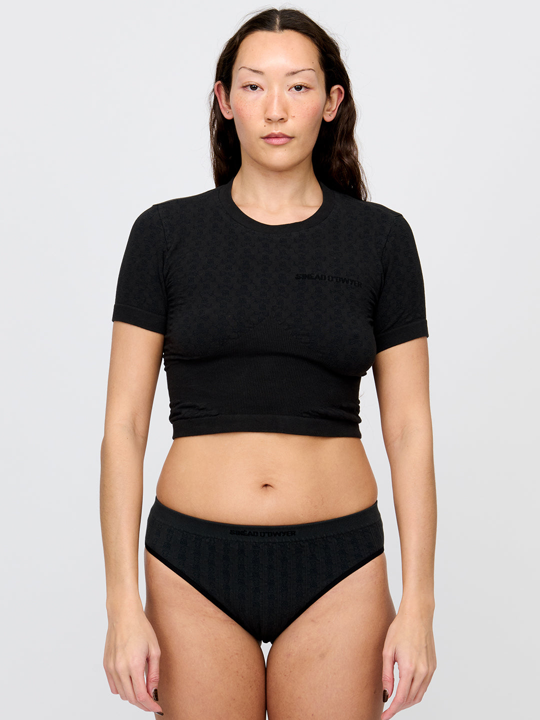 Intricate Jersey Knit briefs in deep doze black. Sinéad O'Dwyer logo sits on band and signature symbols are woven into the seamless construction.